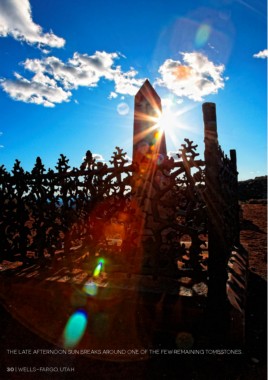 The late afternoon sun breaks around one of the few remaining tombstones..