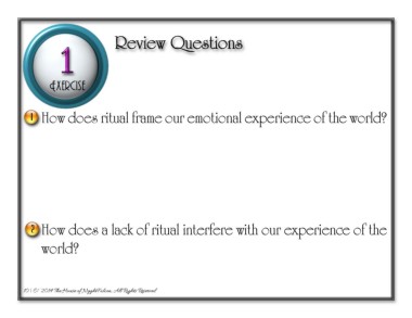 1 How does ritual frame our emotional experience of the world? How does a lack of ritual interfere with our experience of the world? 10 | C/ 2014 The House of NyghtFalcon, All Rights Reserved